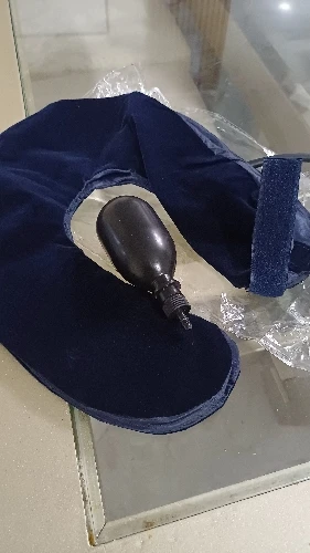 Excellent neck support! It inflates easily and the same for deflating and storing it. Very practical and useful! Material in contact with the skin: velvety and soft. I recommend 💯 ‼️